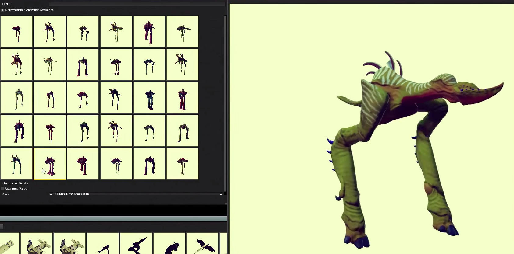 Murray vergleicht die Technik hinter No Man’s Sky mit einem endlosen Blatt karierten Papier, auf dem die Vierecke zufällig ausgemalt werden. Das Blatt Papier stellt die Galaxie dar, während die Quadrate als Planeten fungieren. So werden 3D-Objekte zufällig geformt und es entsteht die schier unendliche Spielwelt. Wie bereits bekannt ist auch jede noch so kleine Welt und deren Umgebung, Bepflanzung und tierische Bewohner zufallsgeneriert. Um das zu bewerkstelligen gibt es diverse Grundformen, bei denen bestimmte Variablen verändert werden. Laut Murray funktioniert das prinzipiell wie die Schieberegler bei der Charaktererstellung in einem Rollenspiel.