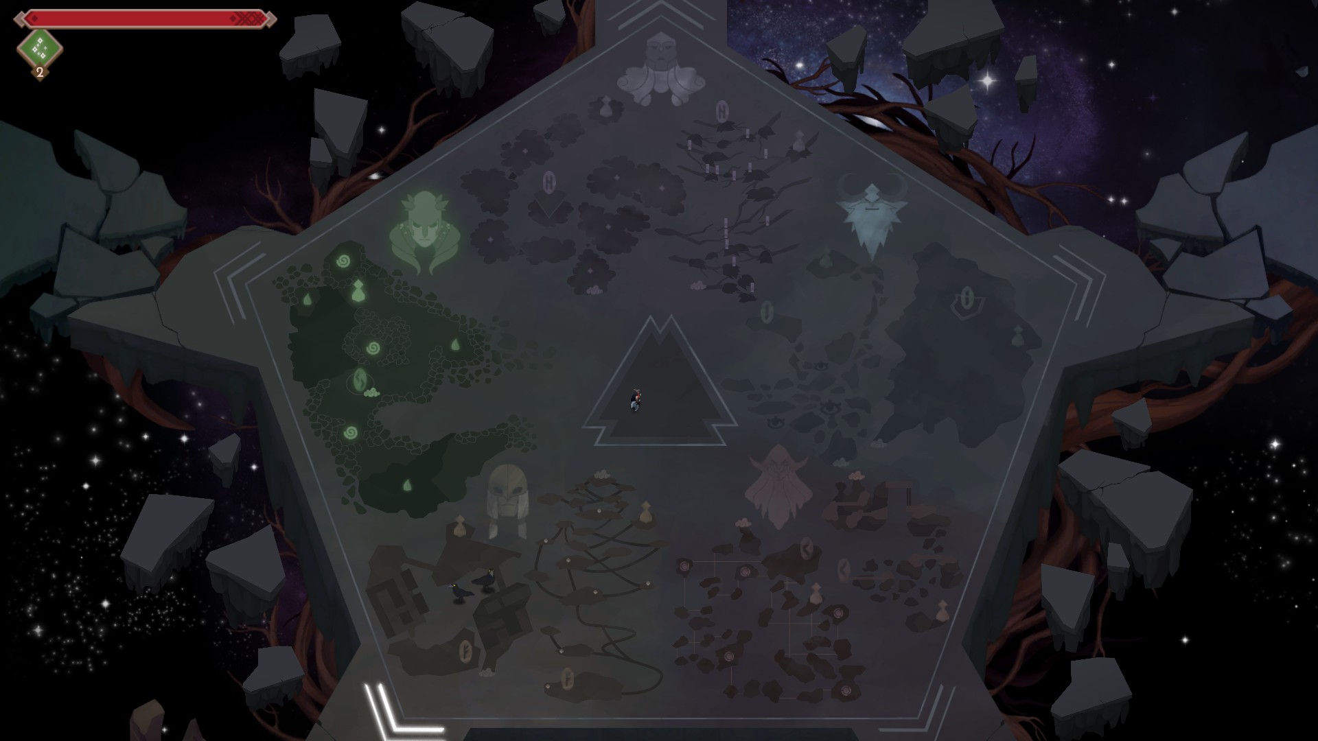 Die ersten Schritte, die wir in Jotun unternehmen, stellt sich allerdings die Frage, wogegen wir uns überhaupt wehren sollten. Gegner sind Mangelware, viel mehr gilt es, die wunderschöne und idyllische Spielwelt zu erkunden. Kleinere Feinde tauchen nur sporadische in Form von stacheligen Tentakeln oder Zwergenschmieden auf. Den Fokus legt Jotun ganz klar auf die Kämpfe gegen die fünf Jötunn. So wandern wir durch die fünf Welten, in denen insgesamt neun Level versteckt sind und sammeln Runen, um die Tore zu öffnen, hinter denen sich die Riesen verstecken.