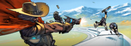 Overwatch wird als Online-Teamshooter wahrscheinlich nicht viele Möglichkeiten haben eine Geschichte zu erzählen. Um die Charaktere aber doch mit Leben zu füllen und dafür zu sorgen, dass die Welt nicht einfach nur Kulisse ist, setzt Blizzard auf andere Medien. Neben den erwähnten Kurzfilmen wurde nun auch eine Web-Comic-Serie gestartet. Im ersten Teil steht der Kopfgeldjäger Jesse McCree im Mittelpunkt. Der Western-Haudegen versucht eigentlich nur mit einem Hyper-Train gemütlich nach Houston zu reisen. Allerdings gibt es da aber einige Fahrgäste, die im diese Ruhe nicht gönnen wollen.