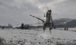 Da ich nicht mit einem Drachen zu kämpfen hatte, setzte ich meinen Weg fort. Dieser führte mich durch ein kleines Verlies zum Fuß des Turms, auf dem die tote Echse lag. Auch hier lauerten böse Buben, auch hier mussten sie sich mir beugen. Die nächsten Gegner, auf die traf, hatten sich klüger aufgestellt: Auf einer langen Geraden wurden die Nahkämpfer durch Armbrustschützen gedeckt. Ich musste mit Bedacht vorgehen, auch weil sich einige der Infanteristen mit einem Schild gegen meine Schläge schützten. Aber einer nach dem anderen fiel und ich zog weiter. Bis ich von ohrenbetäubendem Lärm erschrocken wurde. Entweder war der gepiekte Drache schließlich doch noch erwacht, oder es gab einen weiteren. Auf jeden Fall landete auf einem Turm in der Nähe eine der Flugechsen: riesengroß, schuppig und offenbar missgelaunt. Kaum saß sie, begann sie auch mit dem Feuerspeien. Zum Glück war ich bereits außerhalb ihrer Reichweite. Ich wollte mich trotzdem lieber weiter von dem Untier entfernen. Dies lies mich den Weg eines Ritters kreuzen. Allein seine Rüstung zeigte mir, dass ich es mit ihm wohl schwerer hätte als mit meinen vorherigen Gegnern. Schild und Schwert taten ihr Übrigens. Und tatsächlich: Er teilte schwere Schläge aus und ließ sich von meinem Speer nicht wirklich beeindrucken. Selbst ein Backstab schadete ihm wenig. Trotzdem hielt ich mich wacker, konnte seinen Schlägen standhalten und ihn nach und nach seinem Tode immer näher bringen! Leider war er erfolgreicher und ich fand mich am letzten Leuchtfeuer wieder.