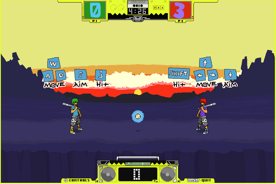 Lethal League ist (noch) ein Browserspiel, in dem ein Spieler gegen einen anderen Spieler antritt, ein Kampfspiel also. Dabei kann der Gegner entweder Computer-, oder Menschengesteuert sein. In dieser Version des Spiels (dazu gleich mehr), befinden sich immer maximal zwei Kontrahenten auf dem Bildschirm. Beide sind mit einem Baseball-Schläger ausgerüstet und dürfen den nicht 'mal zum Prügeln benutzen.