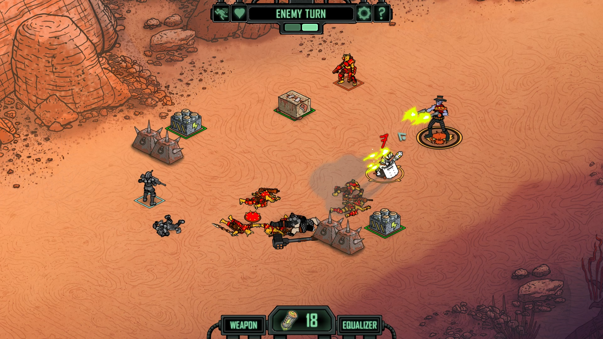 Jedes Schlachtfeld ist in kleine Quadrate unterteilt und jede Einheit kann sich nur über eine bestimmte Menge davon bewegen. Zudem bieten sich Deckungen an, hinter denen wir unsere Kämpfer taktisch platzieren können. Dadurch bietet sich die Möglichkeit, dass Gegner uns bei einem Angriffsversuch verfehlen. Generell empfiehlt es sich, die Auseinandersetzungen eher defensiv anzugehen, da die Lebenspunkte der Charaktere mehr als schnell auf Null sinken. Lediglich um einige der Extra-Ressourcen, die auf dem Schlachtfeld verteilt liegen, aufzusammeln, sollte ein Sturm nach vorne in Erwägung gezogen werden.